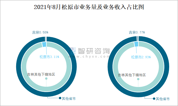 2021年8月松原市業務量及業務收入占比圖