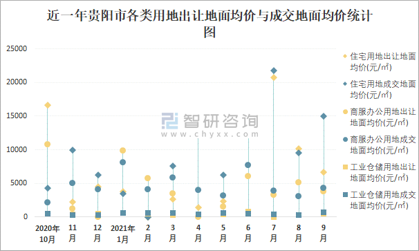 2021年1-9月貴陽市各類用地土地成交情況統(tǒng)計表