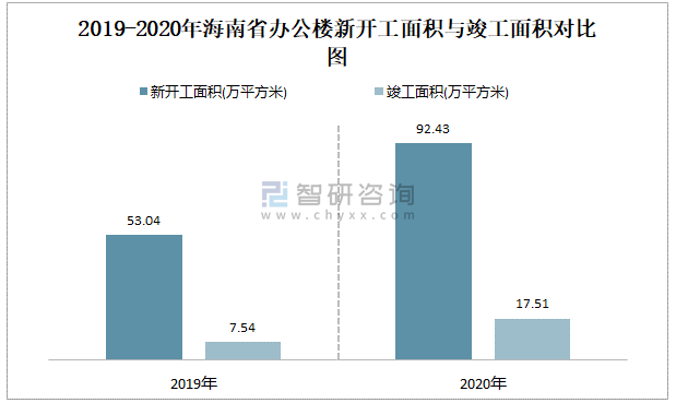 2019-2020年海南省辦公樓新開工面積與竣工面積對比圖