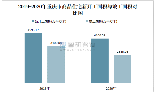 2019-2020年重慶市商品住宅新開工面積與竣工面積對比圖