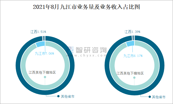 2021年8月九江市業務量及業務收入占比圖