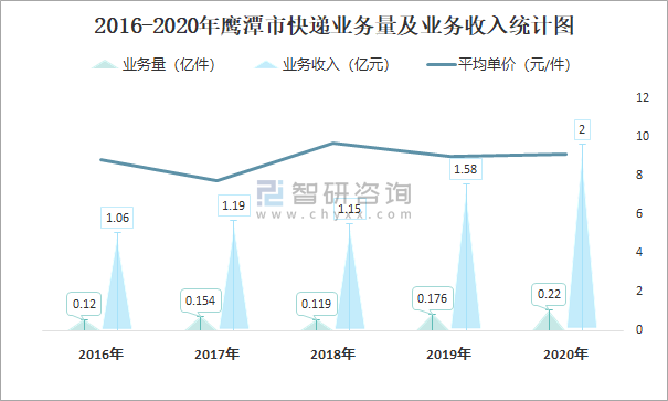 2016-2020年鷹潭市快遞業(yè)務(wù)量及業(yè)務(wù)收入統(tǒng)計(jì)圖