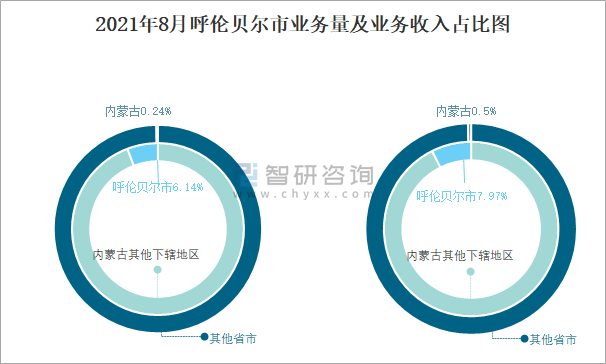 2021年8月呼倫貝爾市業務量及業務收入占比圖