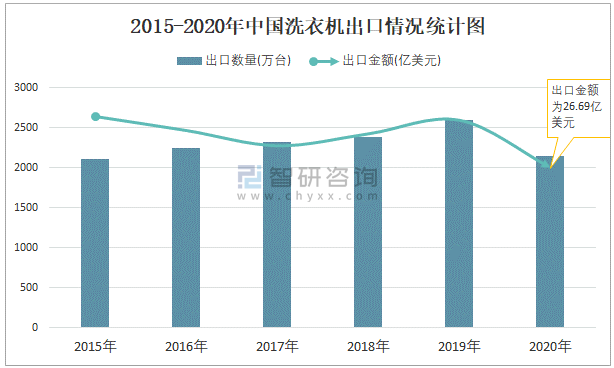 2015-2020年中國洗衣機(jī)出口情況統(tǒng)計(jì)圖