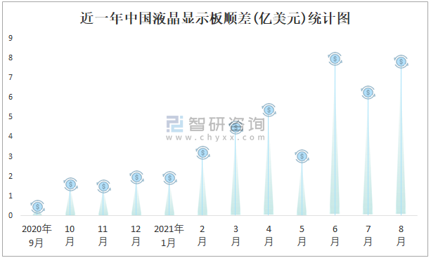 根據中國海關數據顯示:近一年中國液晶顯示板進口金額總體小于出口金額,進出口貿易全部為順差,順差規模在6月達到最大。