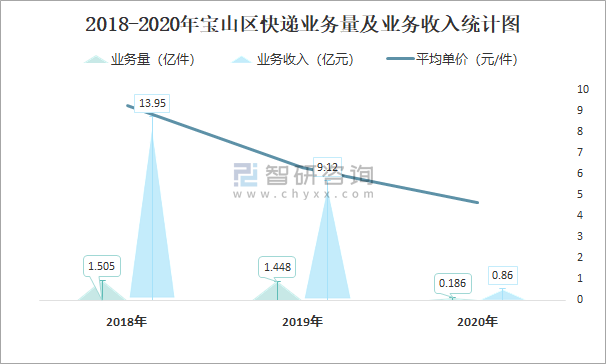 2018-2020年寶山區(qū)快遞業(yè)務(wù)量及業(yè)務(wù)收入統(tǒng)計(jì)圖