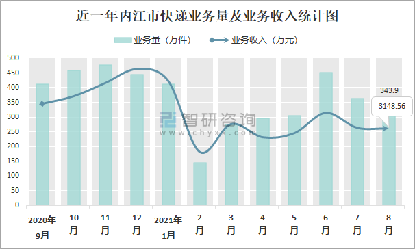 根據各省市郵政局數據可知:2021年8月內江市快遞業務量占四川快遞業務量的1.36%,四川快遞業務量占全國快遞業務量的2.82%;2021年8月內江市快遞業務收入占四川快遞業務收入的1.37%,四川快遞業務收入占全國快遞業務收入的2.74%。