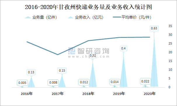 根據(jù)各省市郵政局?jǐn)?shù)據(jù)可知:2021年8月甘孜州快遞業(yè)務(wù)量為44.29萬(wàn)件,業(yè)務(wù)收入為1364.16萬(wàn)元;2021年1-8月甘孜州快遞累計(jì)業(yè)務(wù)量為189.02萬(wàn)件,同比增長(zhǎng)33.75%,累計(jì)業(yè)務(wù)收入為5338.2萬(wàn)元,同比增長(zhǎng)27.17%;2016-2020年甘孜州快遞業(yè)務(wù)量與業(yè)務(wù)收入均逐年遞增,平均單價(jià)2017年起逐年遞增。