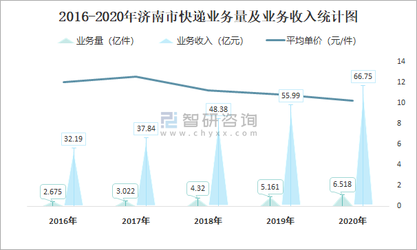 2016-2020年濟(jì)南市快遞業(yè)務(wù)量及業(yè)務(wù)收入統(tǒng)計(jì)圖