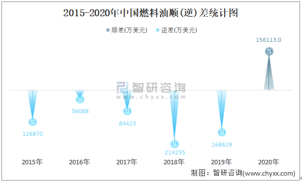 2015-2020年中國燃料油順(逆)差統計圖
