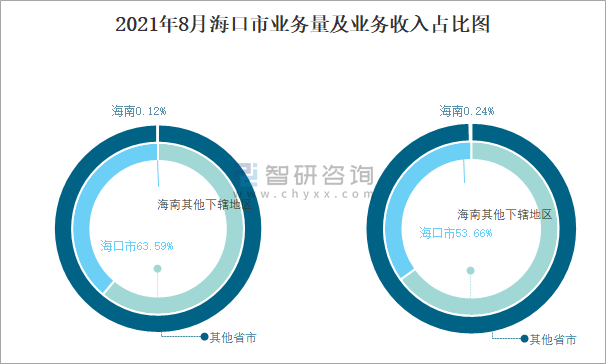 2021年8月海口市業務量及業務收入占比圖