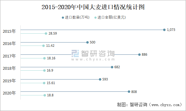 2015-2020年中國大麥進口情況統計圖