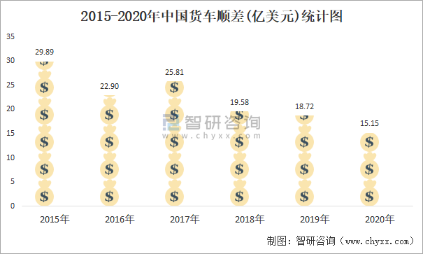 2015-2020年中國貨車順差(億美元)統計圖