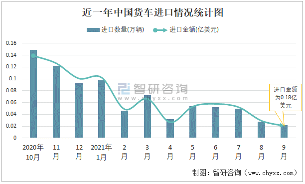 近一年中國貨車進口情況統計圖