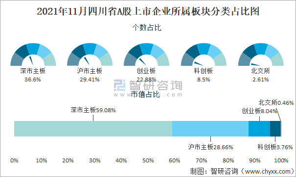 2021年11月四川省A股上市企業所屬板塊分類占比圖