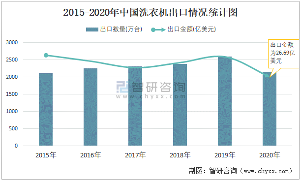 2015-2020年中國洗衣機出口情況統計圖