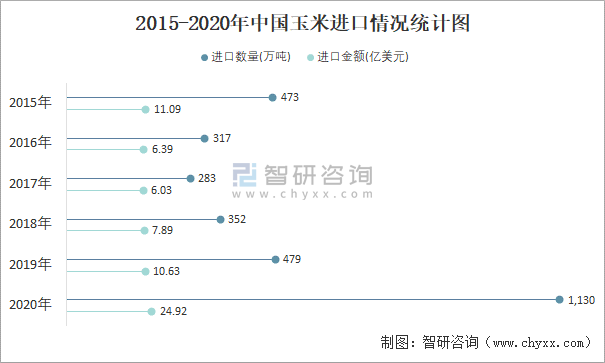 2015-2020年中國玉米進口情況統(tǒng)計圖
