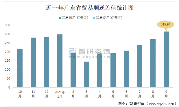 近一年廣東省貿易順逆差值統計圖