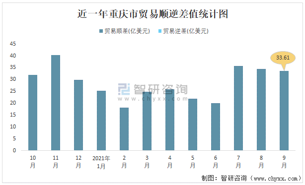 近一年重慶市貿易順逆差值統計圖