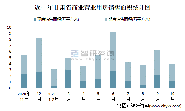 根據(jù)國家統(tǒng)計局?jǐn)?shù)據(jù)可知:2021年9月甘肅省商業(yè)營業(yè)用房銷售面積為4.02萬平方米(其中銷售現(xiàn)房1.16萬平方米,期房2.86萬平方米);2021年1-10月甘肅省商業(yè)營業(yè)用房累計銷售面積為44.85萬平方米;近一年甘肅省商業(yè)營業(yè)用房期房銷售面積遠高于現(xiàn)房銷售面積。