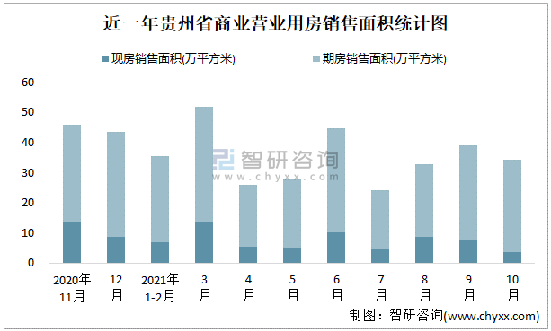 根據(jù)國(guó)家統(tǒng)計(jì)局?jǐn)?shù)據(jù)可知:2021年9月貴州省商業(yè)營(yíng)業(yè)用房銷售面積為34.18萬(wàn)平方米(其中銷售現(xiàn)房3.5萬(wàn)平方米,期房30.68萬(wàn)平方米);2021年1-10月貴州省商業(yè)營(yíng)業(yè)用房累計(jì)銷售面積為315.59萬(wàn)平方米;近一年貴州省商業(yè)營(yíng)業(yè)用房期房銷售面積遠(yuǎn)高于現(xiàn)房銷售面積。