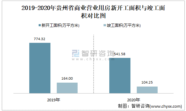 2019-2020年貴州省商業(yè)營(yíng)業(yè)用房新開(kāi)工面積與竣工面積對(duì)比圖