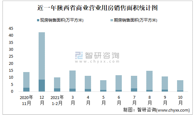 根據國家統計局數據可知:2021年9月陜西省商業營業用房銷售面積為8.15萬平方米(其中銷售現房0.64萬平方米,期房7.51萬平方米);2021年1-10月陜西省商業營業用房累計銷售面積為100.55萬平方米;近一年陜西省商業營業用房期房銷售面積遠高于現房銷售面積。