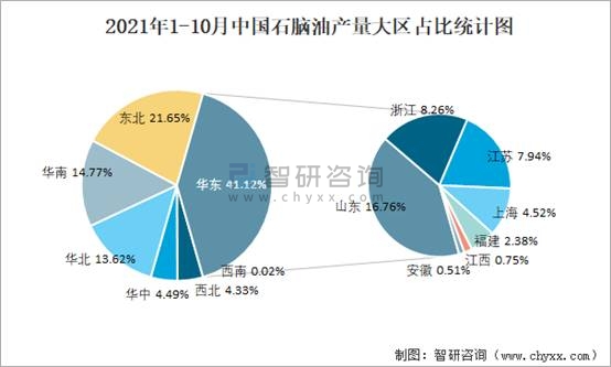 2021年1-10月中國石腦油產量大區占比統計圖