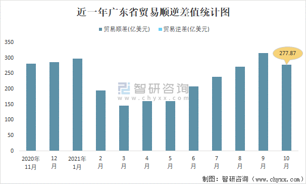 近一年廣東省貿(mào)易順逆差值統(tǒng)計(jì)圖