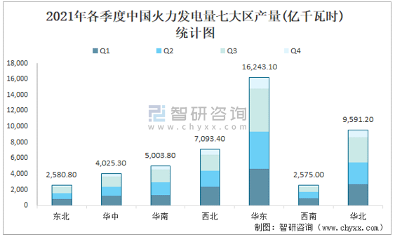 根據國家統計局數據顯示:2021年各季度(第四季度暫只統計10月數據)中國火力發電量主要集中在華東、華北、西北地區生產;2021年1-10月中國火力發電量產量大區分布不均衡,其中華東地區產量最高,特別是山東省貢獻了最多產量;2021年1-10月中國火力發電量各省市產量呈現梯隊式分布,山東、內蒙古、江蘇等省產量最多。