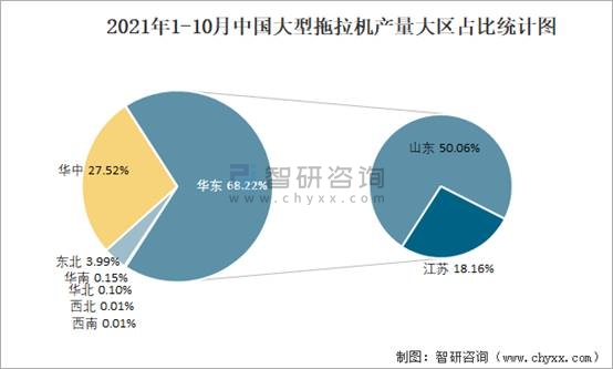 2021年1-10月中國大型拖拉機產量大區占比統計圖