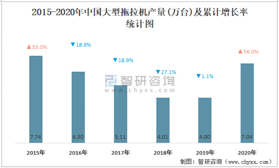 2015-2020年中國大型拖拉機產量及累計增長率統計圖