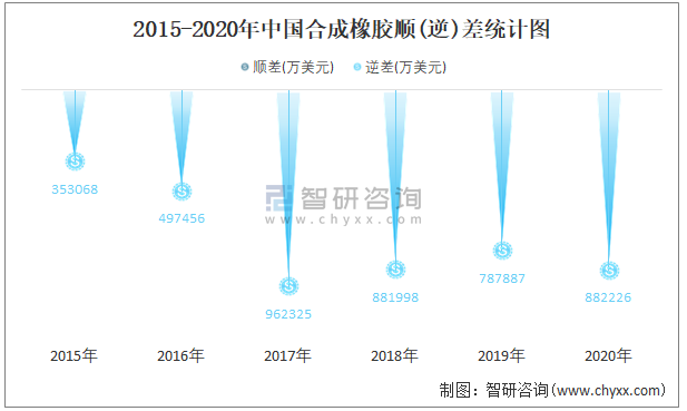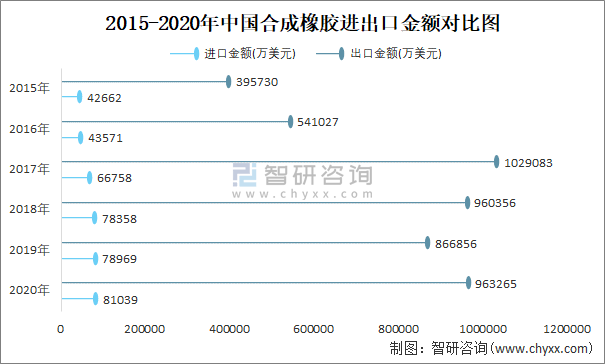 2015-2020年中國合成橡膠進(jìn)出口金額對比統(tǒng)計圖