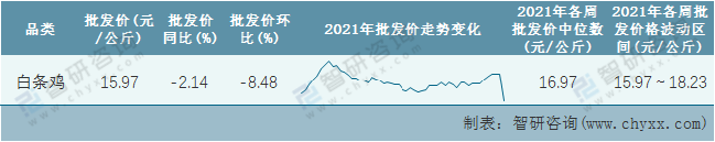 2021年第53周全國(guó)白條雞平均批發(fā)價(jià)統(tǒng)計(jì)表