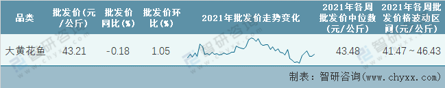 2021年第53周全國大黃花魚平均批發(fā)價(jià)統(tǒng)計(jì)表