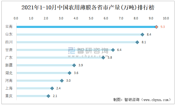 2021年1-10月中國農用薄膜各省市產量排行榜