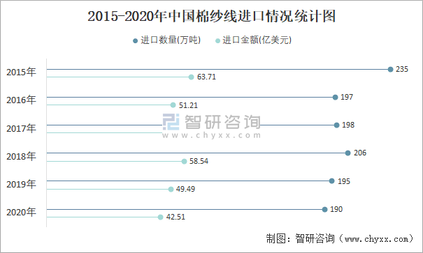 2015-2020年中國棉紗線進(jìn)口情況統(tǒng)計(jì)圖