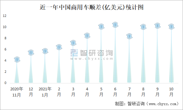 近一年中國商用車順差(億美元)統(tǒng)計(jì)圖