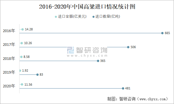 2016-2020年中國高粱進(jìn)口情況統(tǒng)計(jì)圖