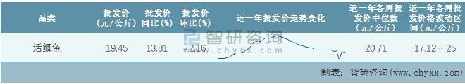 根據農村農業部數據統計可知:2022年第2周全國活鯽魚平均批發價為19.45元/公斤,同比增加13.81%,環比下跌2.16%,近一年全國活鯽魚平均批發價最高達到25元/公斤,批發價最低也要17.12元/公斤。