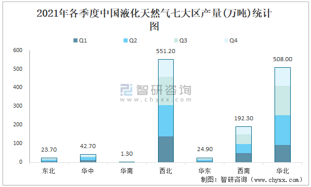 2021年1-11月中國液化天然氣產量為1410.8萬噸 華北地區產量最高(占比39.9%)