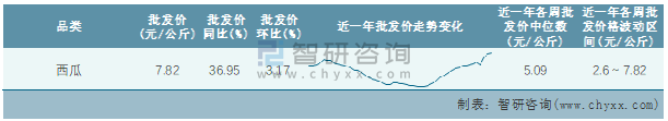 2022年第3周全國西瓜平均批發(fā)價統(tǒng)計表