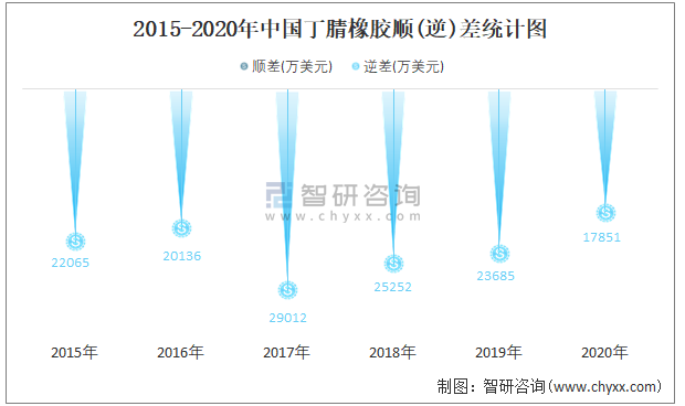 2015-2020年中國丁腈橡膠順(逆)差統(tǒng)計(jì)圖