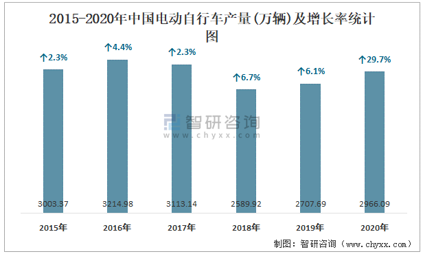 根據國家統計局數據顯示:2021年11月中國電動自行車產量為280萬輛,同比增長26.85%;2021年1-11月中國電動自行車累計產量為3328.1萬輛,同比增長14.91%;2015-2020年中國電動自行車產量2018年跌至最低,此后逐年遞增。