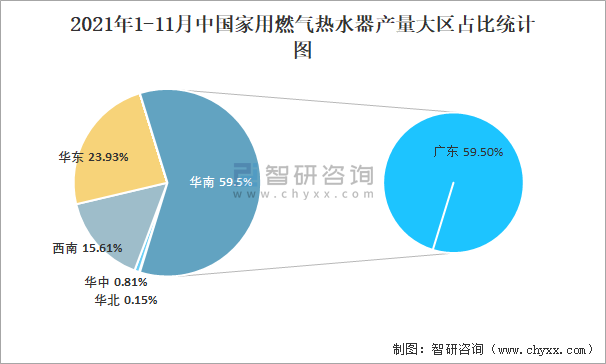 2021年1-11月中國家用燃?xì)鉄崴鳟a(chǎn)量大區(qū)占比統(tǒng)計(jì)圖