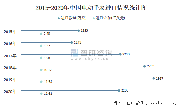 2015-2020年中國(guó)電動(dòng)手表進(jìn)口情況統(tǒng)計(jì)圖
