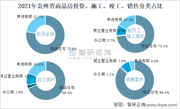 2021年貴州省商品房投資、施工、竣工、銷售分類占比