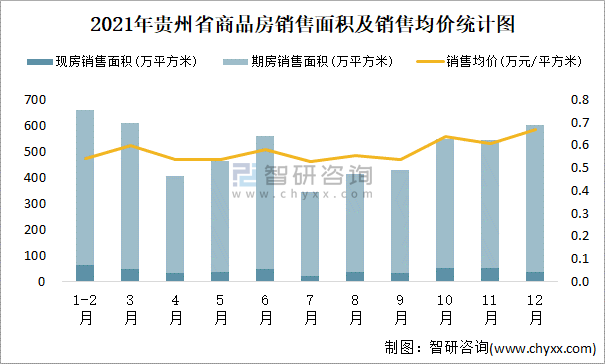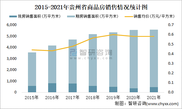 2021年貴州省累計銷售商品房5585.99萬平方米 全年銷售均價為0.58萬元/平方米