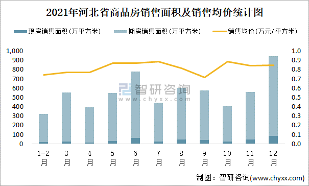 2021年河北省累計銷售商品房6133.15萬平方米 全年銷售均價為0.82萬元/平方米