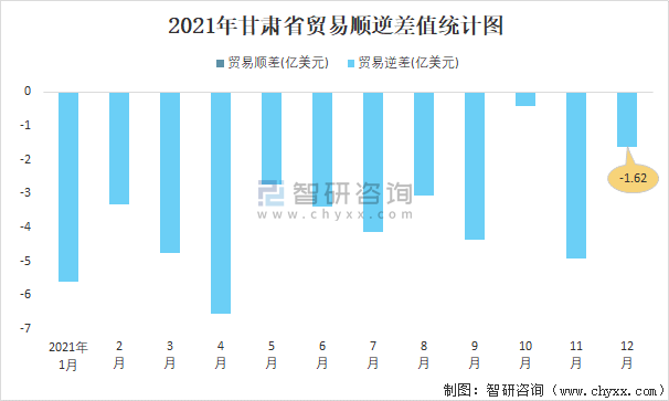 2021年甘肅省貿(mào)易順逆差值統(tǒng)計圖